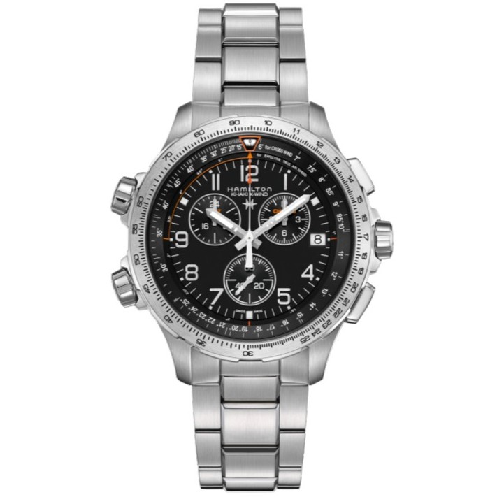 パイロットの信頼に応えるタフネスと精度。クロノグラフ機能搭載の「カーキ アビエーション X-Wind GMT クオーツ」。46mmの存在感とタフな10気圧防水。