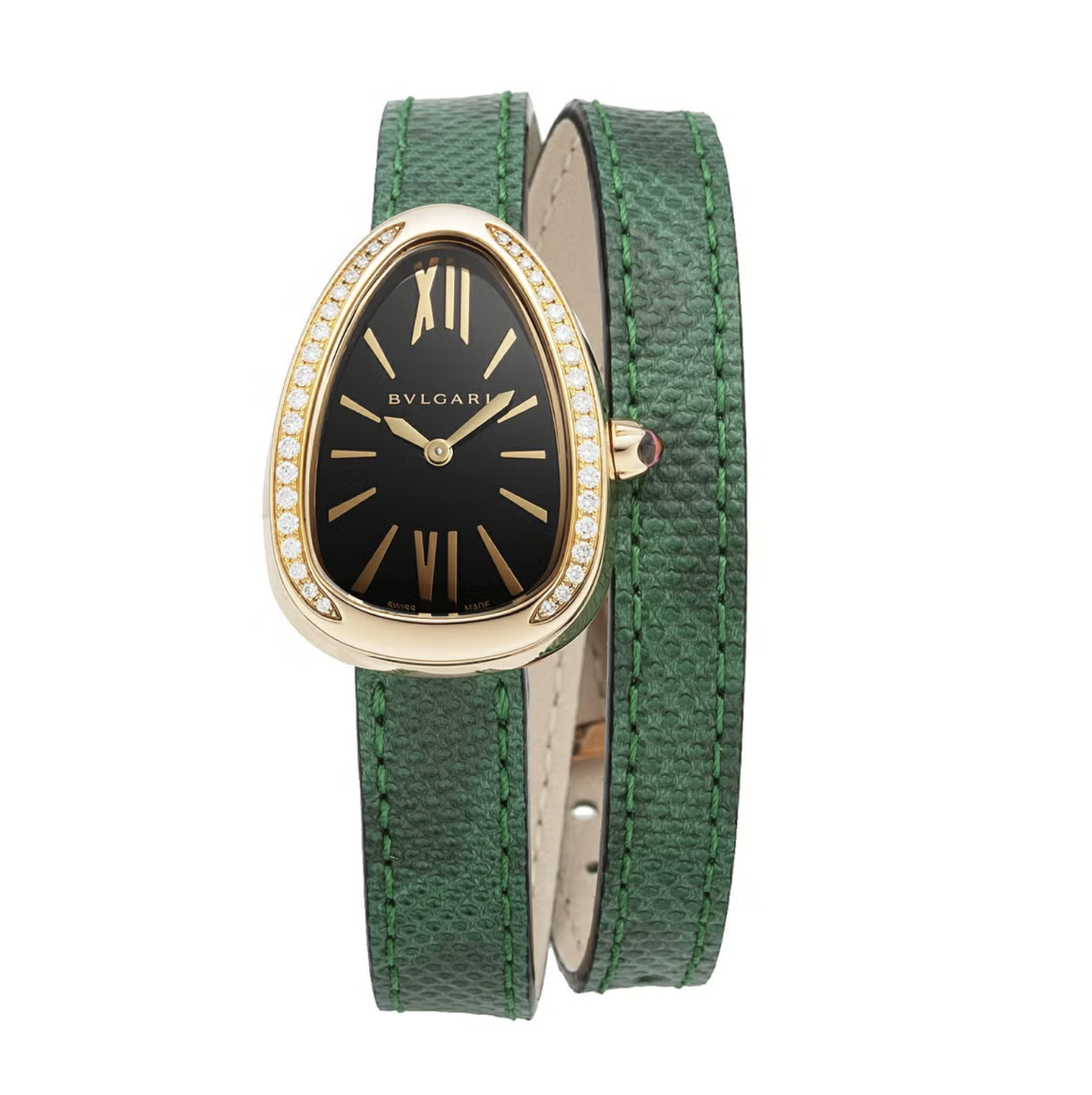 ブルガリを象徴するセルペンティは、古来より「再生」や「永遠」の象徴とされる蛇をモチーフにした、唯一無二のコレクションです。官能的な曲線を描く18Kピンクゴールドのケースは、手元にしなやかに寄り添い、洗練された大人の気品を演出します。