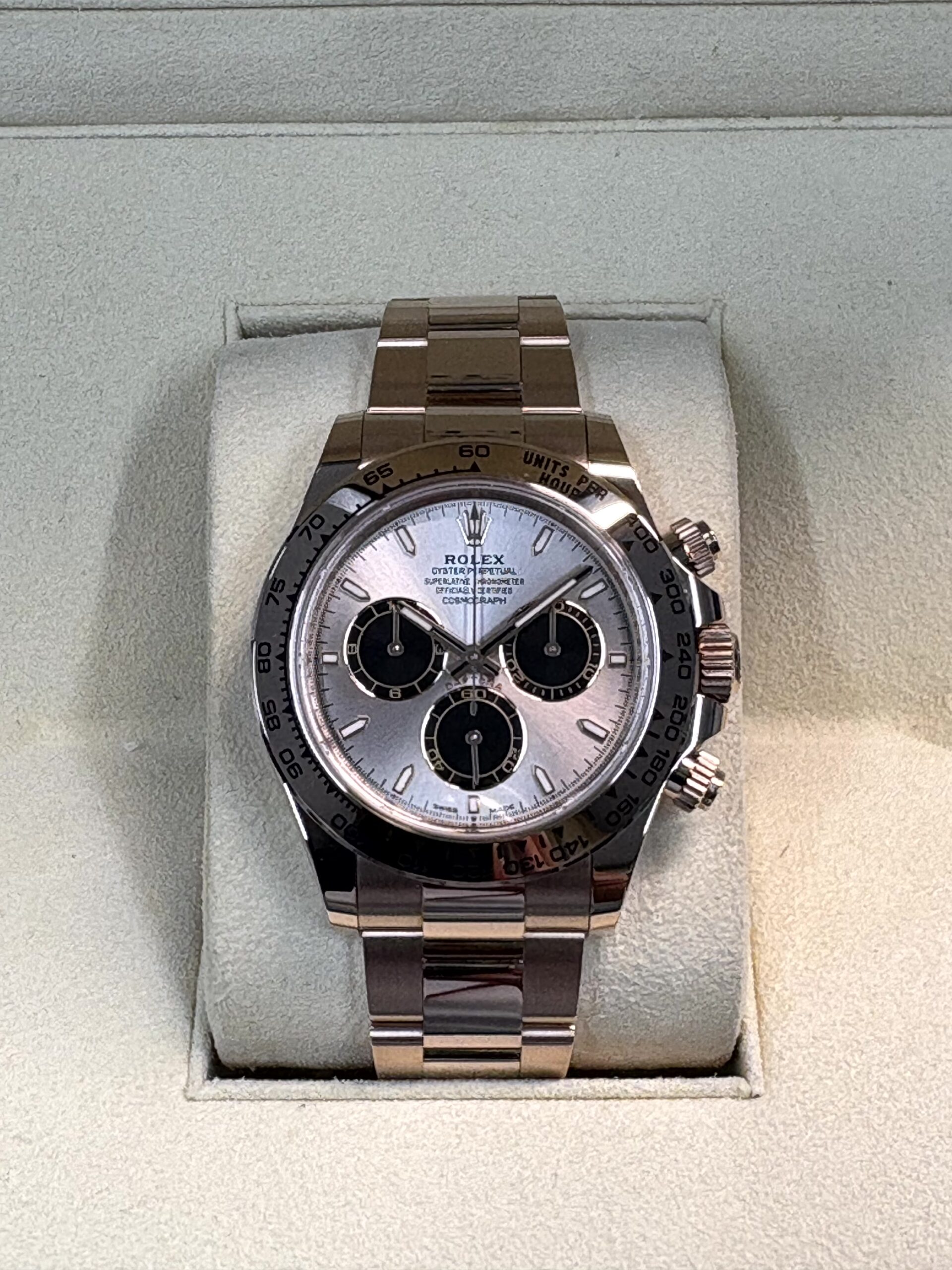 時代を超えたエレガンスと洗練が融合した、ロレックスの傑作、コスモグラフ デイトナ 126515LN サンダストモデルをご紹介します。このタイムピースは、高級時計の象徴であるロレックスの中でも、特に高い人気を誇るデイトナコレクションの進化を体現しています。