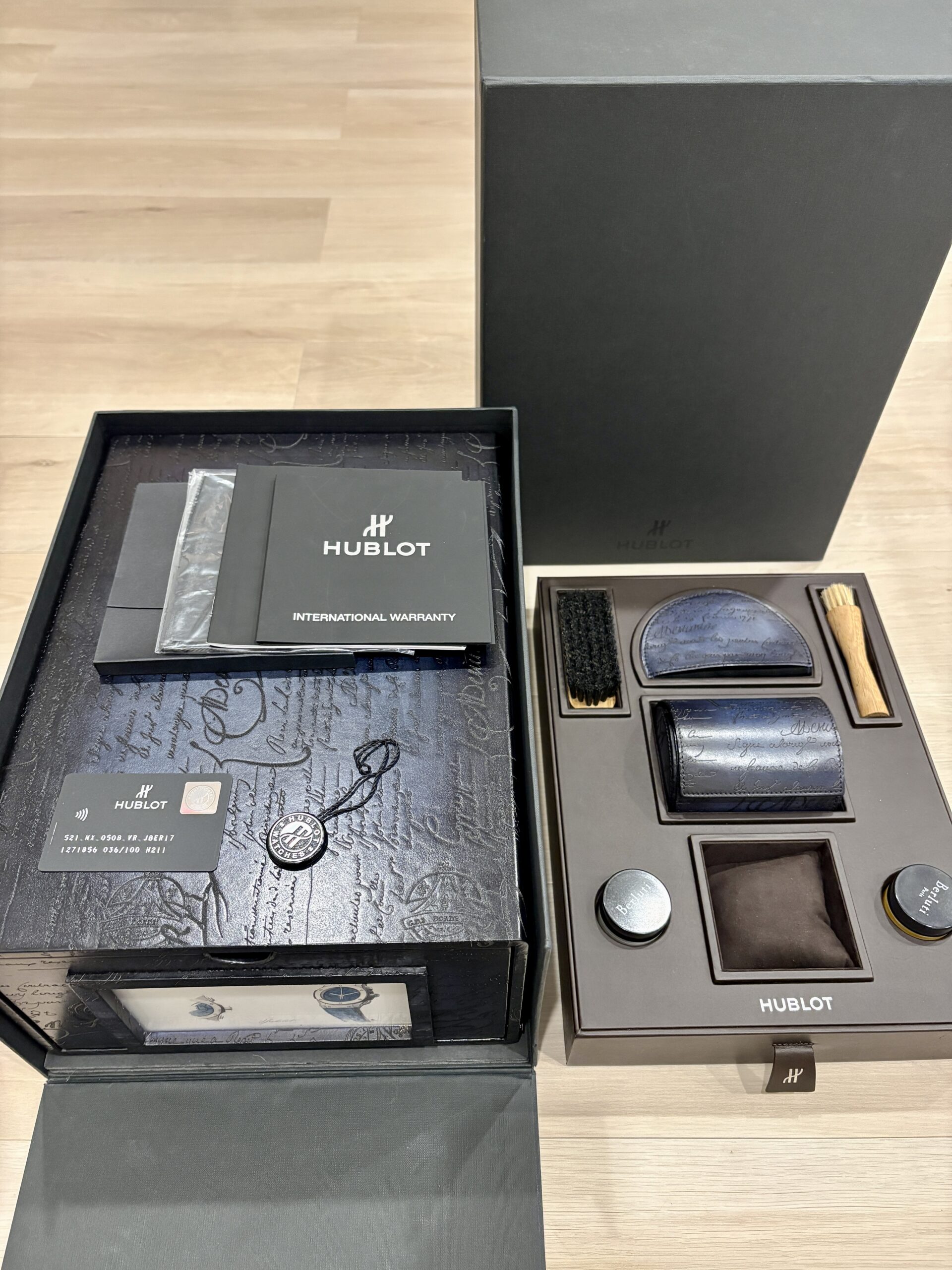 至高の時計メーカー「ウブロ」と、フランスの至宝「ベルルッティ」による、芸術的なコラボレーションモデルです。