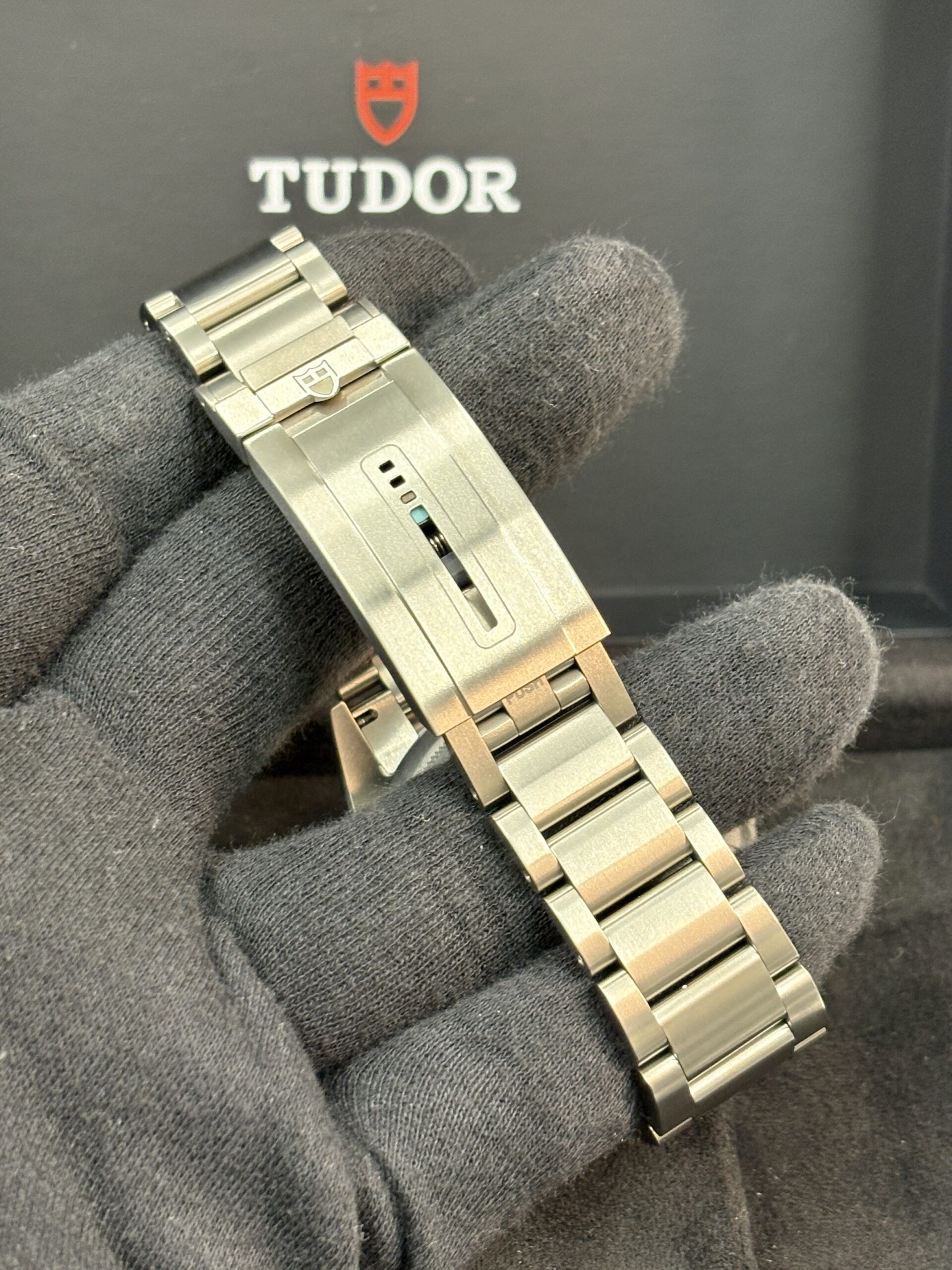 ブラックダイヤルには高輝度夜光を採用し、暗所での視認性も抜群。チタン製ブレスレットはT-Fitクラスプを備え、工具不要で細かなサイズ調整が可能です。さらに純正ラバーストラップも付属し、シーンに応じて使い分けいただけます。